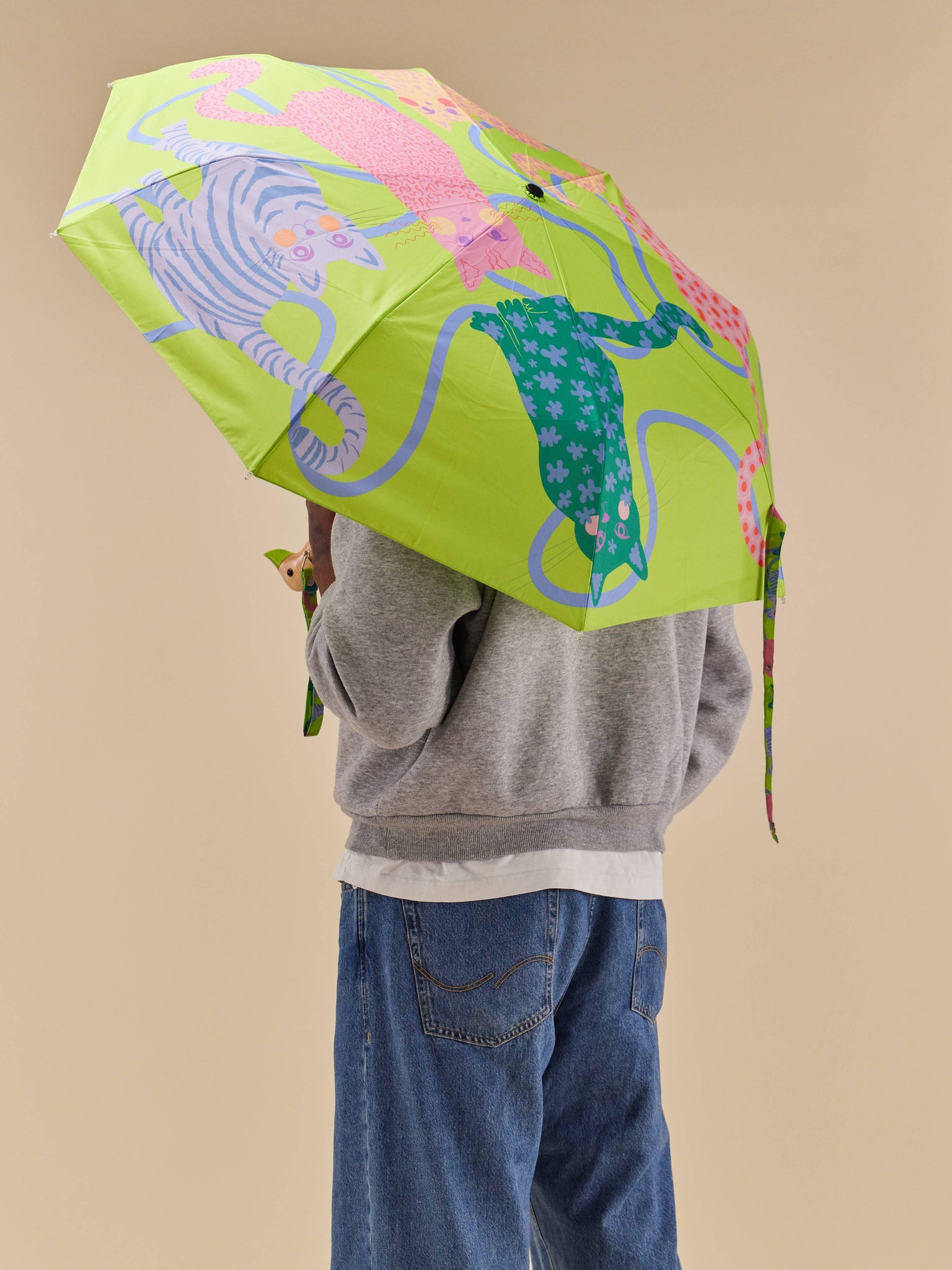 Lime Green Arty Cats Duck Umbrella